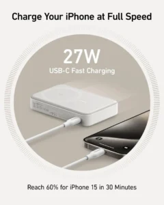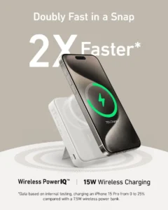 - One of the standout features of the Anker A1654 MagGo MagSafe Power Bank is its ability to double up on speed. With 15W ultra-fast wireless charging, you can charge your devices up to 2X faster than traditional chargers. For example, you can get your iPhone 15 from 0 to 50% battery in just 44 minutes, allowing you to stay connected and productive without long downtimes.